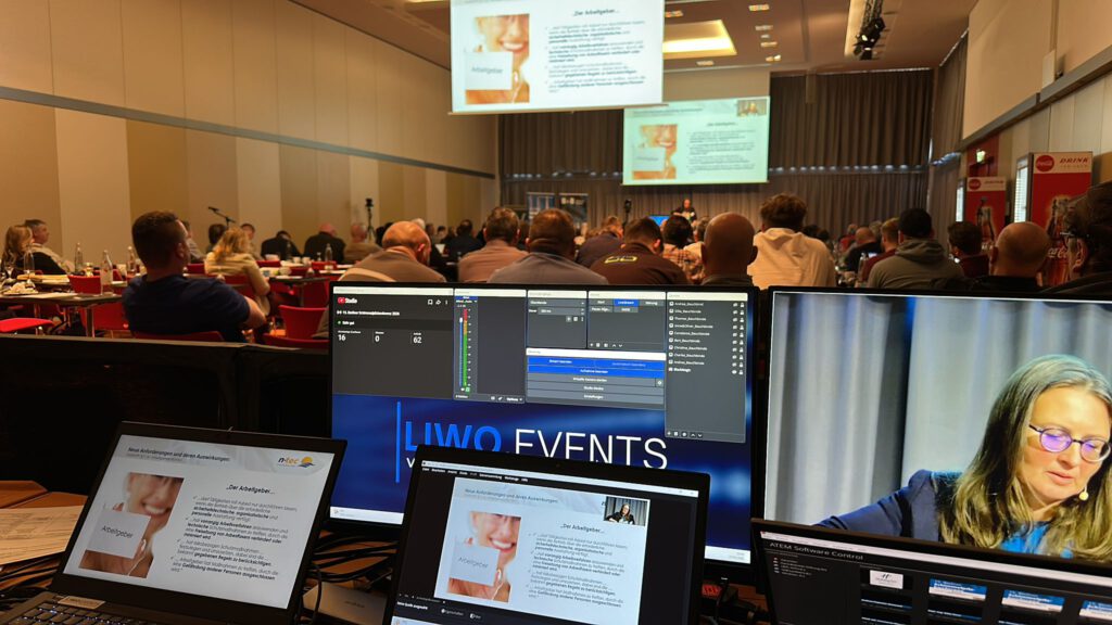 Ein besonderer Fokus lag auf der Umsetzung des Livestreams: Die Veranstaltung wurde über YouTube live übertragen und parallel nahtlos in die kundeneigene Softwarelösung eingebettet. So konnten sowohl die Teilnehmer vor Ort als auch das digitale Publikum von einer stabilen, qualitativ hochwertigen Übertragung profitieren.